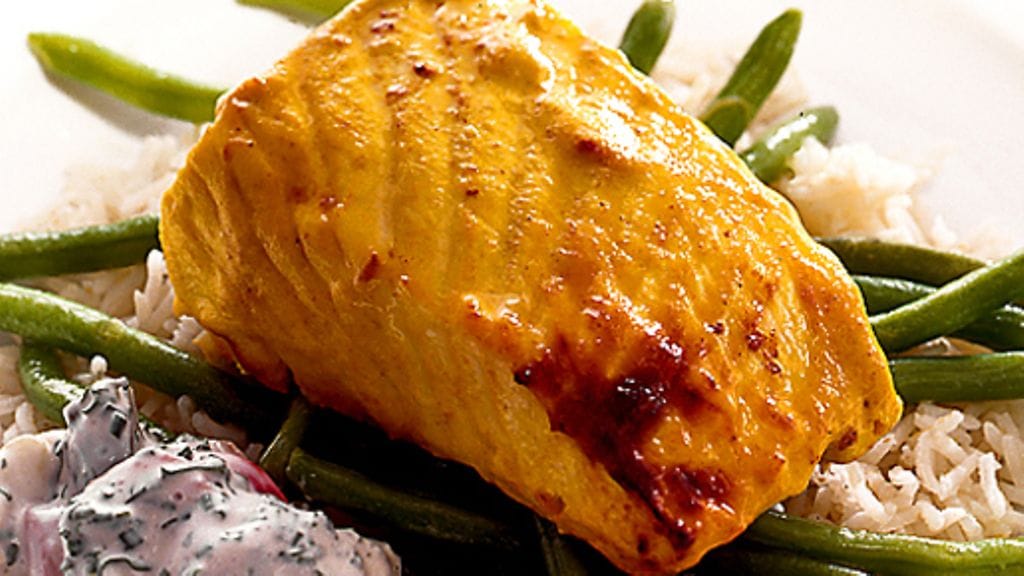 3. Tarjoile kala papujen ja riisin kera.