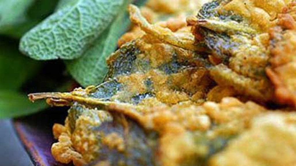 - Dippaa täytetyt salvianlehdet munassa ja leivitä jauhoissa.