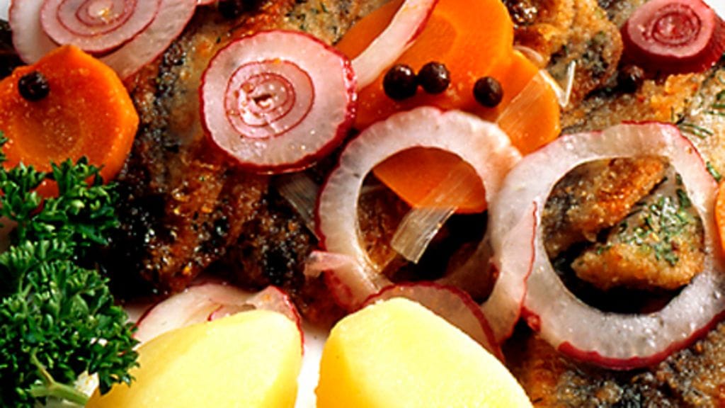 3. Viipaloi porkkana ja keltasipuli, viipaloi punasipuli ohuesti. Laita porkkana ja sipulit silakoiden päälle, kaada päälle kylmä liemi. Peitä muovikelmulla ja säilytä kylmässä.