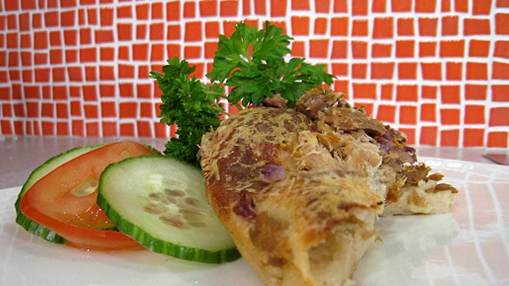 Saat ruokaisan pannarin kun ripottelet pinnall yhden desilitran suikaloitua kinkkua, savukalaa, tonnikalaa tai kasviksia raasteena sekä yhden desin juustoraastetta. Lisää ainekset puolikypsään pannariin.