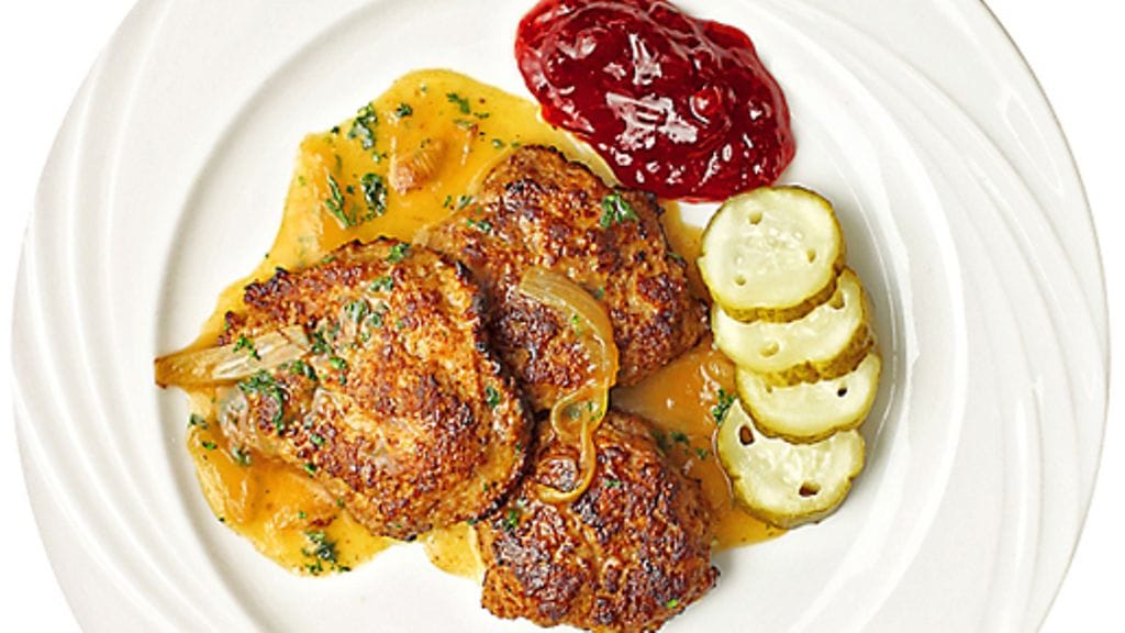 1. Sekoita kerma ja maito. Vatkaa kananmuna kermamaitoon. Lisää korppujauhot ja anna turvota ainakin 10-15 minuutin ajan. Sekoita jauheliha kermamaito-korppujauheseokseen, niin että syntyy kiinteä taikina. Mausta suolalla ja vastarouhitulla valkopippurilla. Muodosta taikinasta pyöreitä, sentin paksuisia pihvejä.