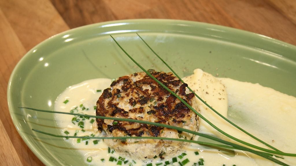 Suolaa ja pippuroi kalasuikaleet ja anna maustua kylmässä noin puoli tuntia. Lisää muut aineet ja anna makujen tasaantua. Muotoile esimerkiksi rengasmuotin avulla pihveiksi. Pariloi nopeasti erittäin kuumalla parilalla tai paistinpannulla ja siirrä uunipannulle.