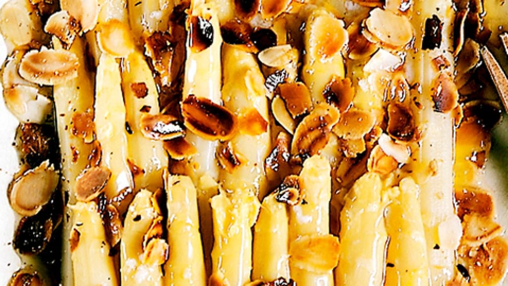 3. Sulata voi niin että se ruskistuu kevyesti, kaada parsojen päälle, ripottele päälle mantelilastut ja tarjoile.