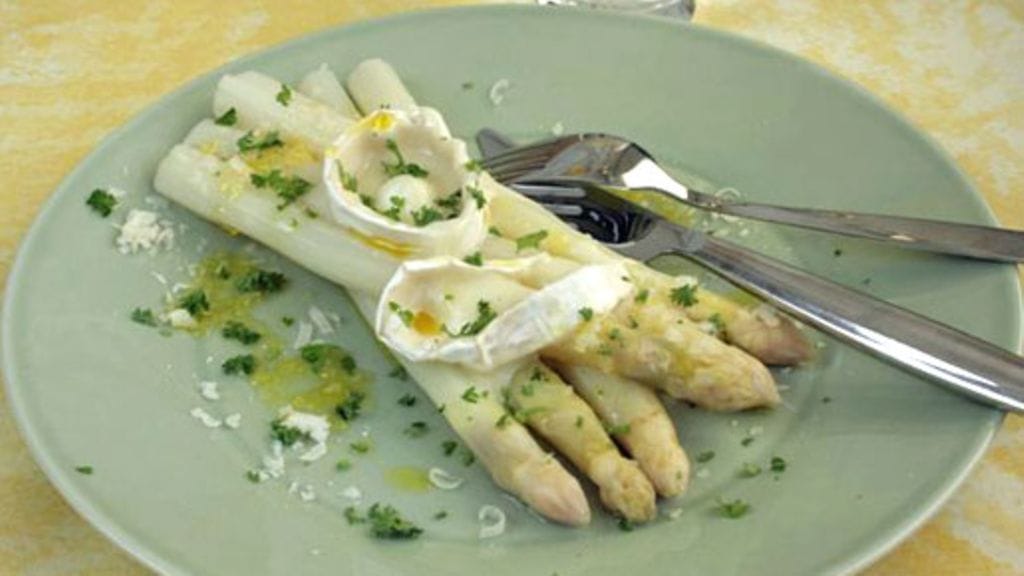 Jaa kevytvuohenjuustoa neljään viipaleeseen ja nosta kuumien parsojen päälle. Jos parsat ehtivät jäähtyä, nosta lautanen parsoineen ja juustoineen hetkeksi mikroon, niin että juusto sulaa parsojen päälle.