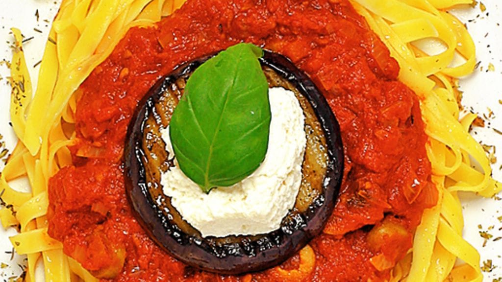 2. Kuori ja hienonna sipuli ja valkosipuli, paista oliiviöljyssä. Poista chilistä siemenet, hienonna chili ja yrtit ja lisää pannuun. Lisää tomaatit ja anna kastikkeen porista hiljalleen 20 minuuttia. Viipaloi oliivit ja lisää kypsennyksen loppuvaiheessa. Mausta suolalla, viinietikalla, sokerilla ja pippurilla. Anna kiehua vielä 10 minuuttia.