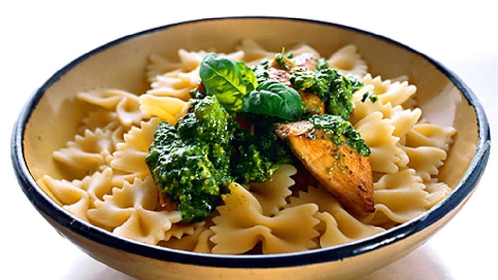 3. Mausta kanafileet suolalla, pippurilla, paprikajauheella ja valkosipulijauheella. Paista ne voissa n. 4 minuuttia molemmin puolin, sisälämpötilan tulee olla 72 astetta. Viipaloi ne viistoiksi siivuiksi ja asettele pastan päälle. Tarjoile peston ja raastetun parmesaanin kera.
