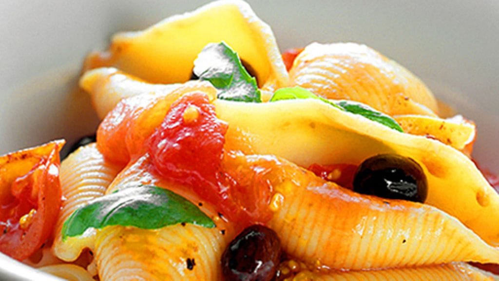3. Ripottele päälle mustia oliiveja ja tuoreita basilikanlehtiä ennen tarjoilua. Tarjoile parmesaaniraasteen kera.
