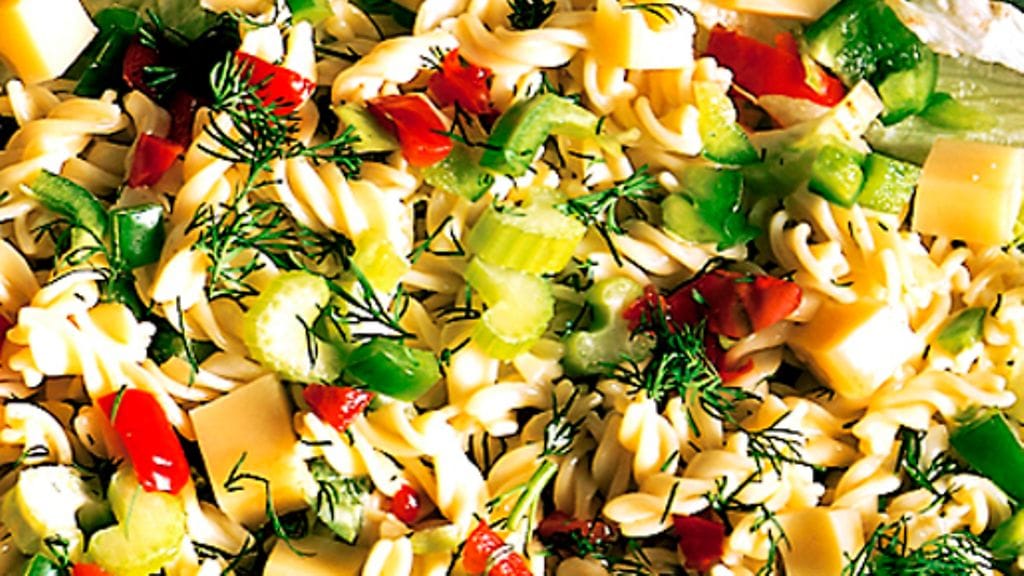 Syö pastasalaatti kevyenä lounaana tai ota se mukaan piknikille. Vaihtelua saat erilaisilla pastoilla, kuutioidulla kinkulla tai savulohisuikaleilla.