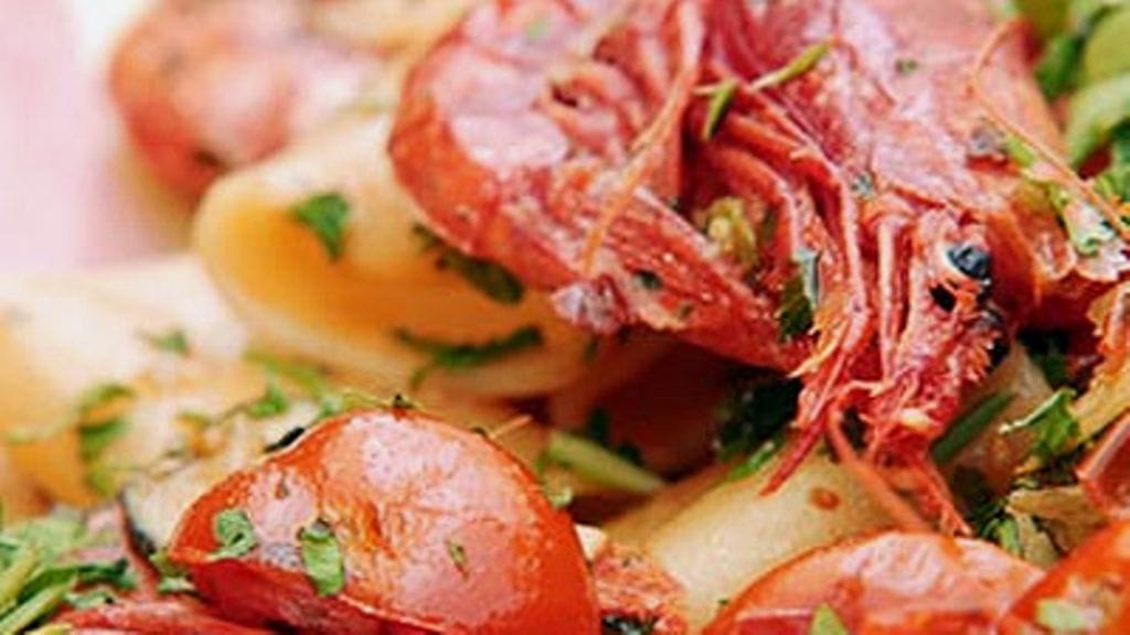 - lisää katkaravut, tomaatit, suola, persilja sekä viini