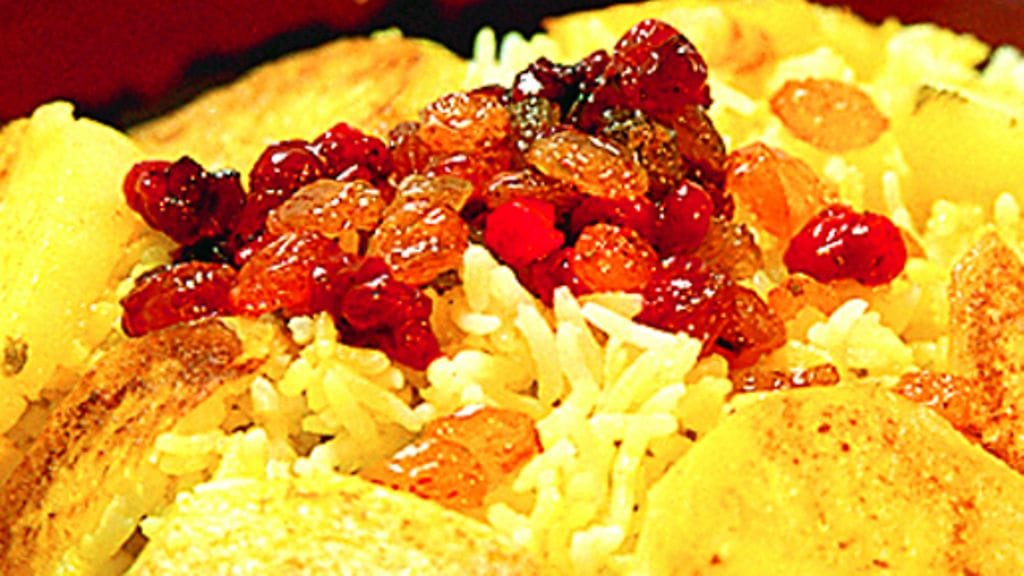 2. Lisää varoen riisi kiehuvaan veteen ja keitä kovalla lämmöllä 4-5 minuuttia. Sekoittele välillä etteivät riisinjyvät tartu toisiinsa kiinni. Huuhdo riisi juoksevan kylmän veden alla, sekoita haarukalla, jotta saat pois lopunkin tärkkelyksen. Lisää ½-1 tl suolaa ja sekoita haarukalla. Pese kattila ja kuivaa hyvin, kuumenna siinä 3 rkl öljyä ja ¼ tl kurkumaa.
