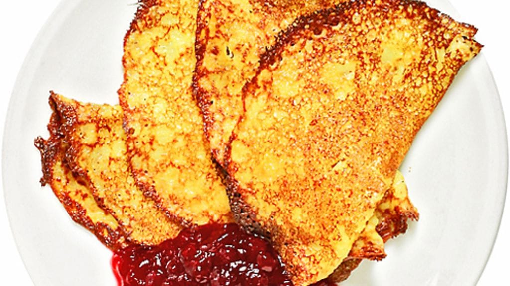 2. Paista taikinasta pieniä ohukaisia voissa melko alhaisella lämmöllä, jotta perunaraaste ehtii kypsyä. Tarjoile joko puolukkasurvoksen tai ruotsalaisittain makeahkon puolukkahillon kera.