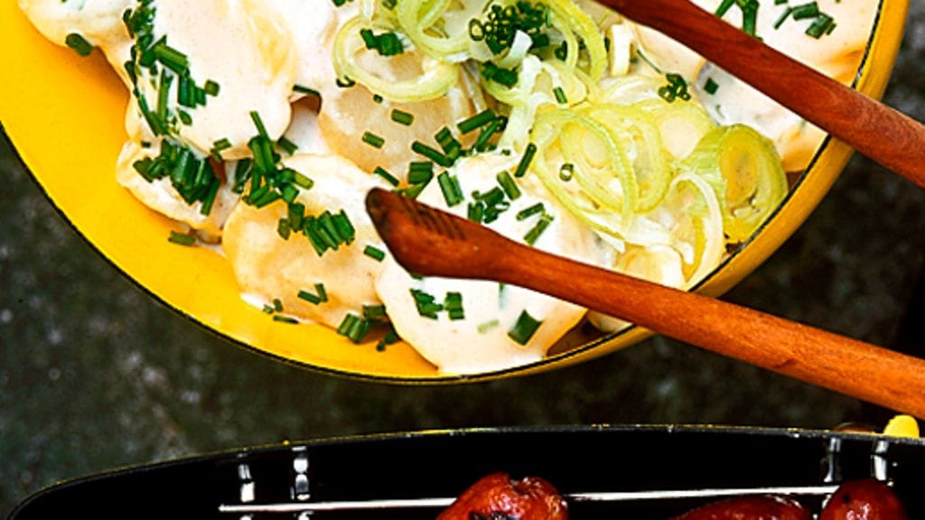 4. Kääntele kastike perunaseokseen varovaisesti. Ripottele päälle ruohosipulia.