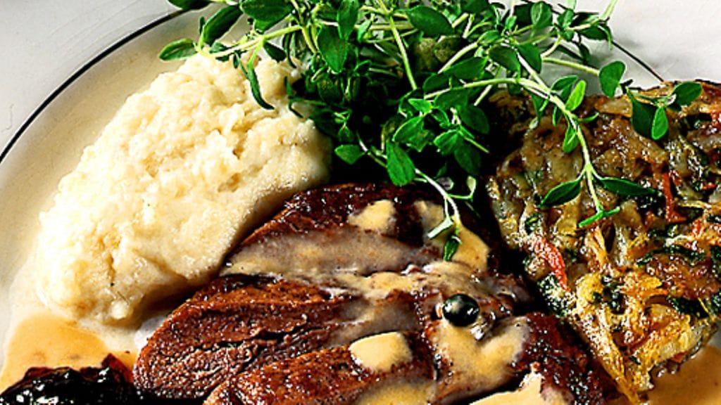 1. Kastike: Sekoita lihaliemi ja punaviini, timjami ja murskatut katajanmarjat. Keitä seosta kokoon, kunnes jäljellä on noin 2 dl. Siivilöi kastikepohja, nosta kasari takaisin liedelle ja vispaa sekaan sinihomejuusto ja mustaviinimarjahyytelö. Lisää kerma, maista ja lisää tarvittaessa suolaa ja pippuria. Sekoita jauhot tilkkaan vettä ja kaada suurus nauhana kastikkeeseen koko ajan sekoittaen. Anna hautua hiljaa kannen alla.