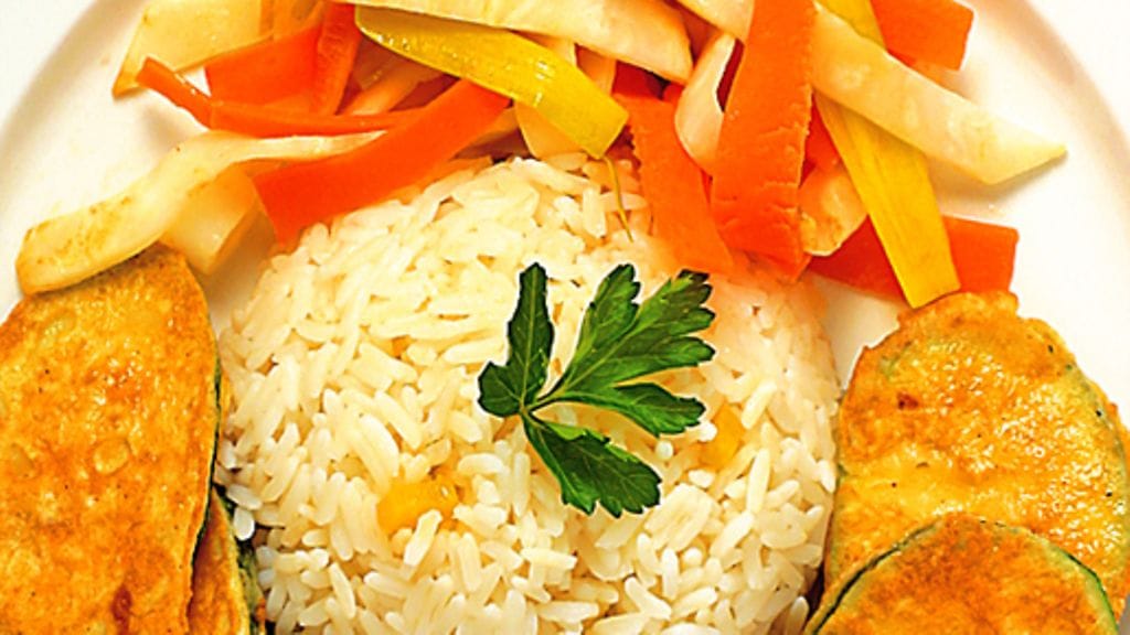 1. Paprikariisi: Keitä 4 annosta riisiä pakkauksen ohjeen mukaan. Leikkaa paprikat pieniksi kuutioiksi ja pane kiehumana riisin kanssa viimeiseksi 5 minuutiksi. Mausta suolalla.
