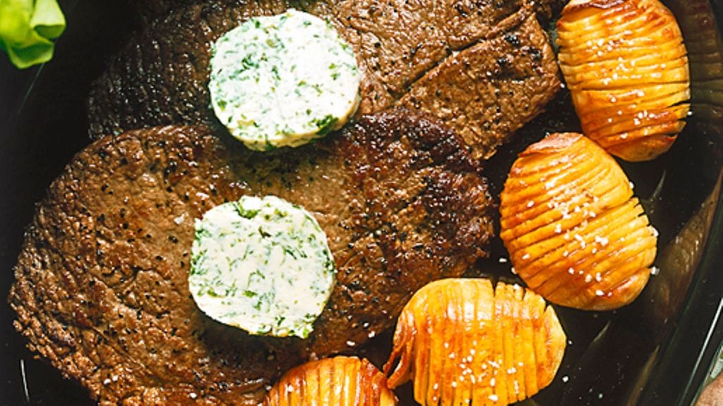 3. Mausta pihvit ja paista kummaltakin puolelta 2-3 minuuttia. Tarjoa pihvit yrttivoiviipaleiden ja perunoiden kanssa.