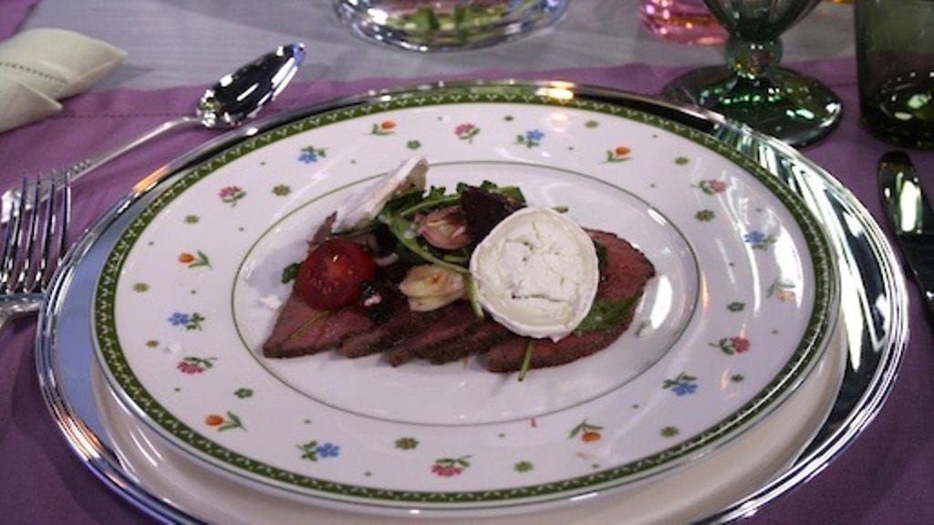Uunipunajuuria ja vuohenjuusto-rucolasalaattia: