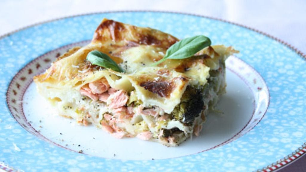 Kuori ja hienonna sipuli. Kuumenna öljy kasarissa ja ruskista lohisuikaleet. Lisää loppuvaiheessa parsakaali ja sipuli.
