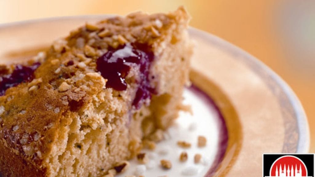 Sekoita kuivat aineet keskenään. Lisää joukkoon munat, maito ja sulatettu, jäähtynyt margariini. Sekoita taikina tasaiseksi ja kaada se voideltuun, jauhotettuun irtopohjavuokaan (halkaisija n. 24 cm).