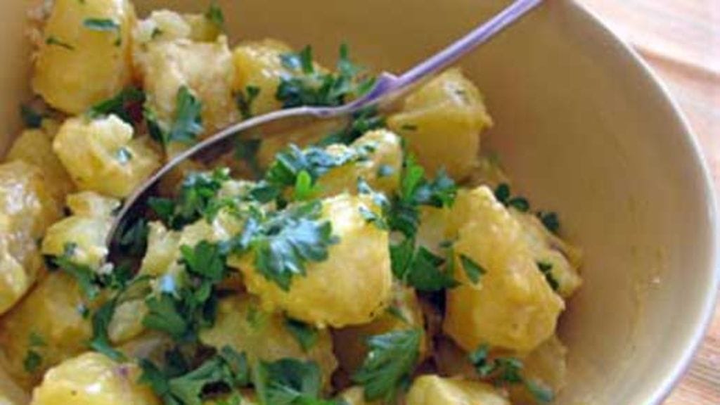 Kaada aiolikastike perunoiden päälle ja pyörittele perunoita varovasti kastikkeessa. Anna marinoitua 20 minuuttia. Ripottele päälle persiljaa ja suolaa maun mukaan. Tarjoa lämpimänä.