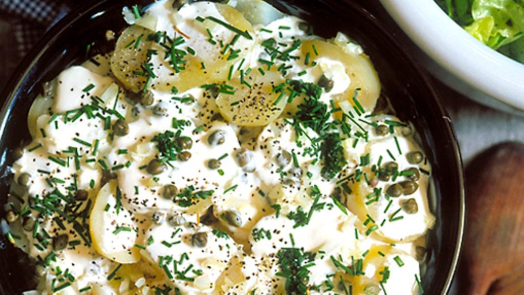 Yksinkertainen ja hyvä perunasalaatti, josta tulee parasta tehtynä uusista perunoista.