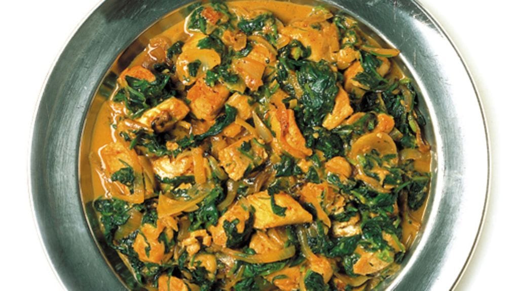 1. Sulata kala ja leikkaa se 2 cm:n paloiksi. Kuori ja hienonna sipuli. Halkaise chilit pituussuunnassa ja poista siemenet. Leikkaa chilit ohuiksi suikaleiksi. Suikaloi pinaatti.