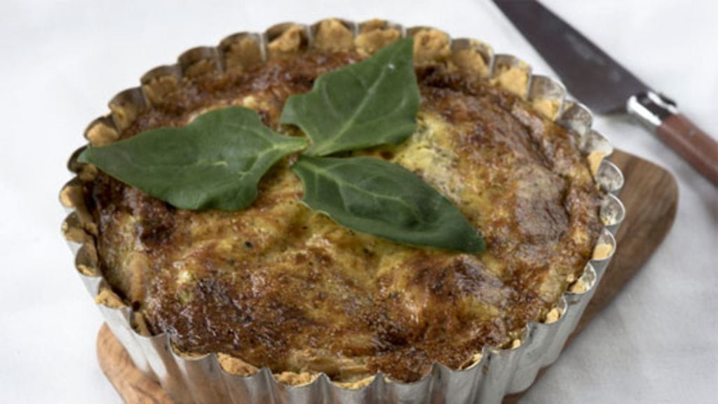 Painele taikina halkaisijaltaan 24-26 cm piirasvuoan pohjalle ja reunoille ja esipaista 225 asteisessa uunissa keskiritilätasolla noin kymmenen minuuttia.