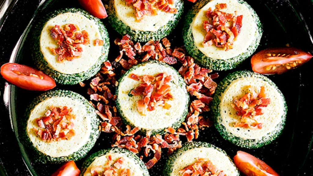 3. Kumoa pinaattivuoat vadille. Paista pekoni ja ripottele vuoille. Koristele tomaatein. Tarjoile kaksi vuokaa per ruokailija alkuruokana.