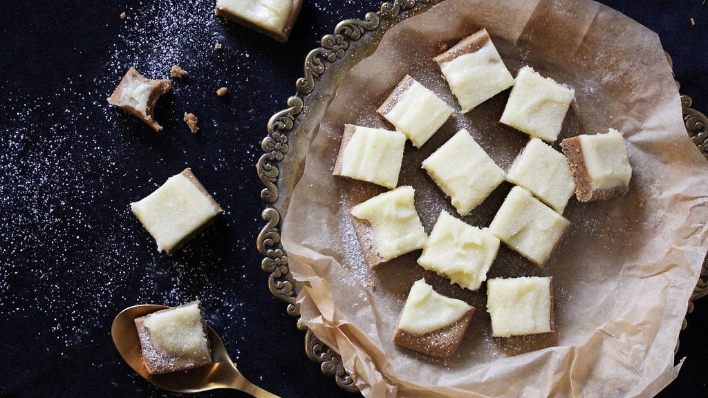 - Levitä kuorrute hyvin jäähtyneiden piparitaikinalevyjen päälle. Leikkaa levyt suupaloiksi ja nauti!