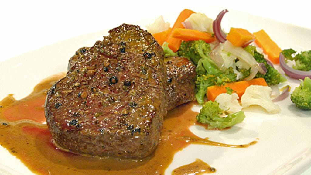Tee sillä aikaa kastike. Kaada demi glace sekä lihaliemi pannulle, jossa on vielä pihvien paistolientä ja anna hautua hetki. Lisää kerma, konjakki sekä sinappi joukkoon ja mausta tarvittaessa murskatuilla pippureilla. Keitä miedolla lämmöllä sen aikaa, kun pihvit kypsyvät uunissa.
