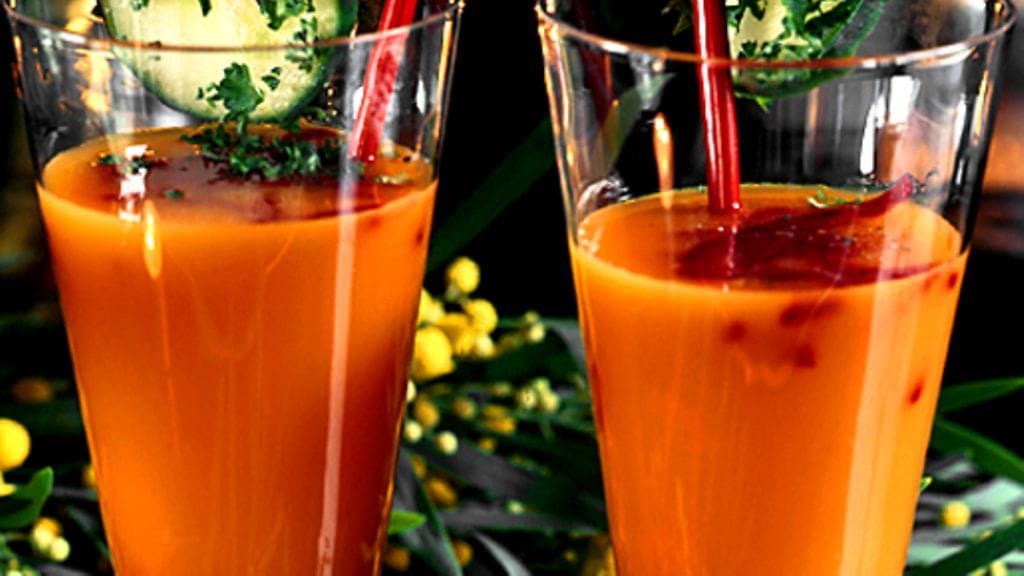 1. Sekoita mehut, mausta sitruunalla ja pippurilla. Kaada laseihin.