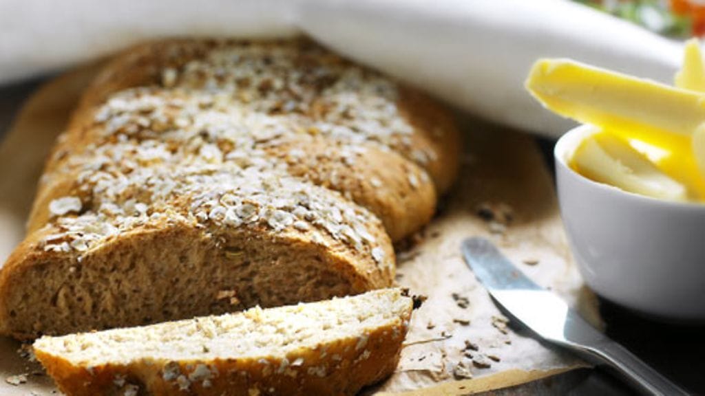 Valmista taikinajuuri sekoittamalla kylmään piimä-vesiseokseen hiiva, jauhot ja juokseva tai sulatettu hunaja. Anna sen tekeytyä (käydä) huoneenlämmössä 1 vrk. Lisää sen jälkeen loput aineet ja ota taikinasta isolla lusikalla nokareita leivinpaperin päälle uunipellille, painele mataliksi leipäsiksi. Ripottele pinnalle hiutaleita. Paista 225-asteisen uunin keskitasolla n. 15 min, kunnes pinta saa kauniin värin. Nauti heti kuumana voin/juuston ja paprikan/kurkun kanssa.