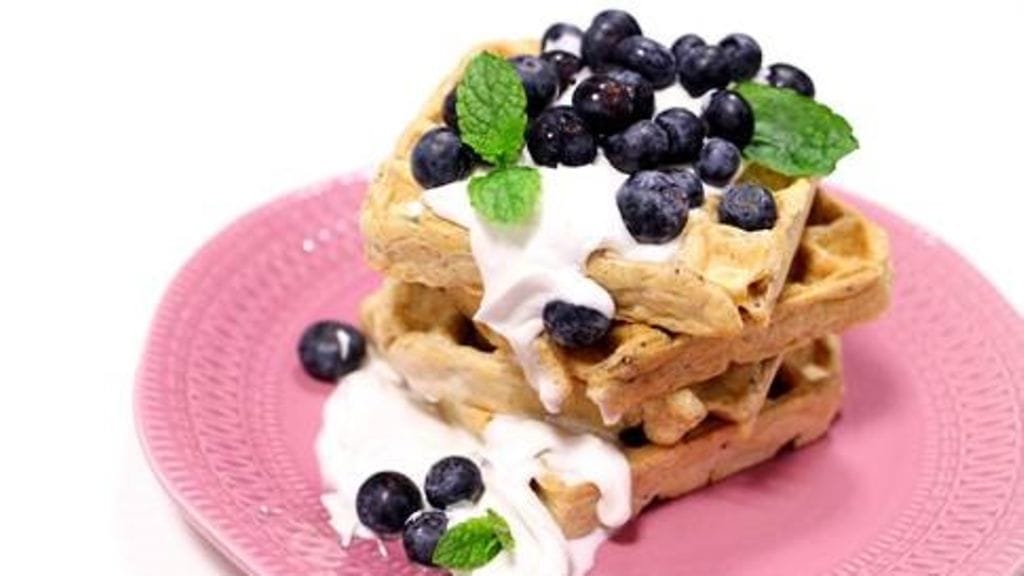 Anna taikinan turvota muutama minuutti. Paista vohveliraudalla kauniita kullanruskeita vohveleita.