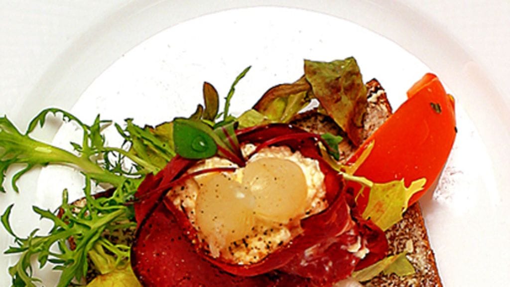 3. Viimeistele leivät piparjuurikermalla ja munankeltuaisella, jauha päälle hieman mustapippuria.