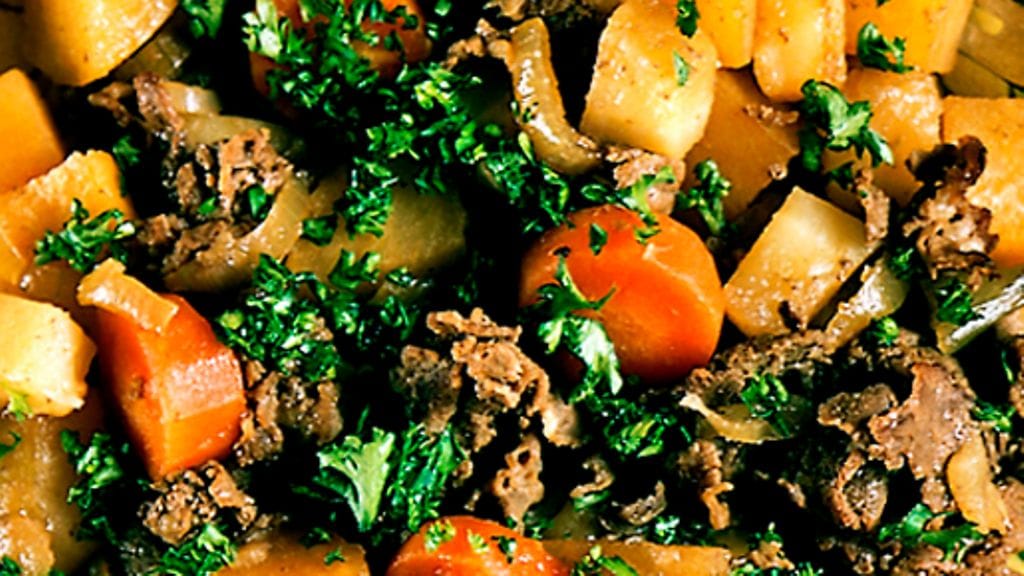 3. Lisää puoliksi sulanut poronkäristys pataan 10 minuutin kypsennyksen jälkeen ja anna sen hautua mukana, kunnes pata on valmis. Ripottele päälle persiljaa ja tarjoile.