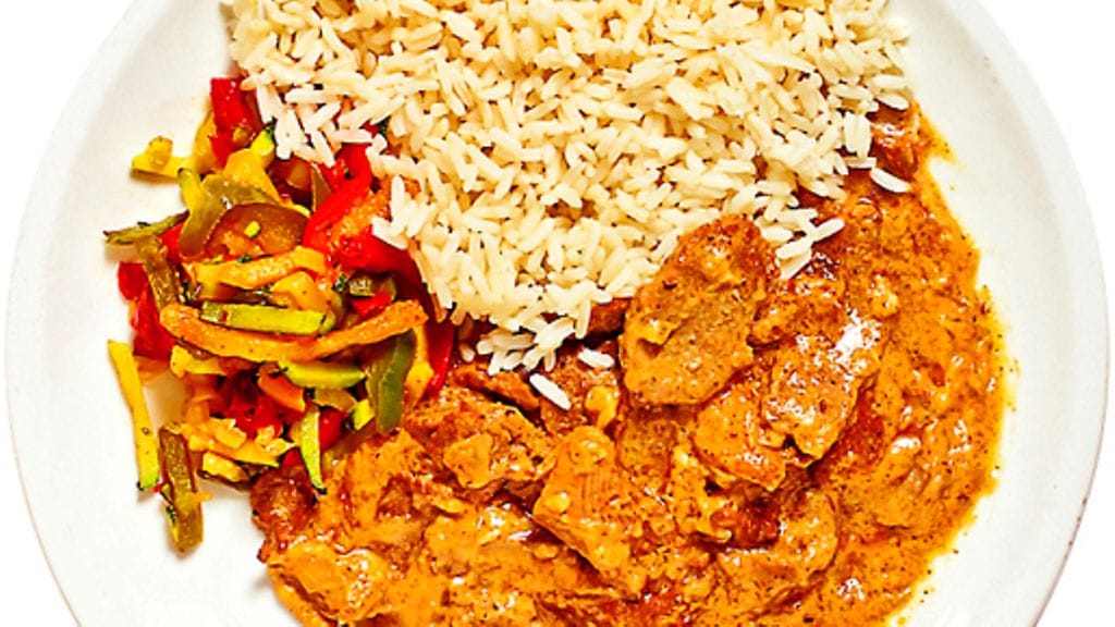 2. Pane liha ja sipulit pataan ja mausta suolalla ja pippurilla. Kuullota sienet ja lisää pataan. Lisää kerma ja anna kiehua joitakin minuutteja. Tarjoa riisin ja vihannesten kera.