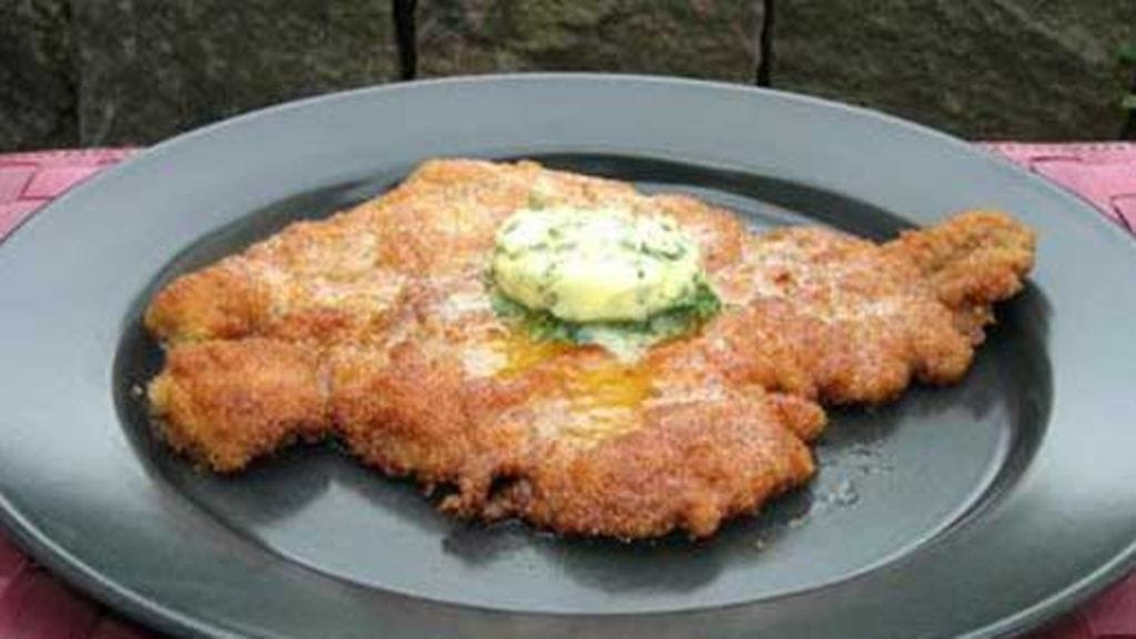 Poista ulkofileestä kalvot terävällä veitsellä. Leikkaa neljä pihviä ja nuiji ohuiksi leikkeiksi. Mausta suolalla ja valkopippurilla. Riko munat lautaselle ja sekoita mukaan hieman vettä. Pyörittele leikkeet ensin vehnäjauhoissa, sitten munissa ja lopuksi korppujauhoissa. Paista kypsäksi pannulla kuumassa rypsiöljyssä noin 2 min. per puoli.