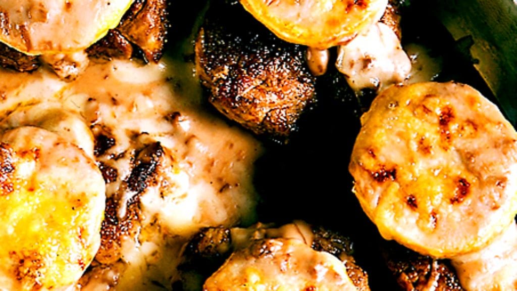1. Kuumenna uuni 250 asteeseen. Puhdista filee, leikkaa se noin 5 sentin paloiksi. Aseta ne leikkuupinta ylöspäin ja litistä ne pihveiksi. Mausta ja paista ne kypsiksi voissa pannulla.