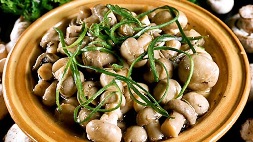2. Viipaloi sienet jos ne ovat suuria. Sekoita valkosipulin kanssa kulhossa, kaada päälle kastike. Anna vetäytyä.