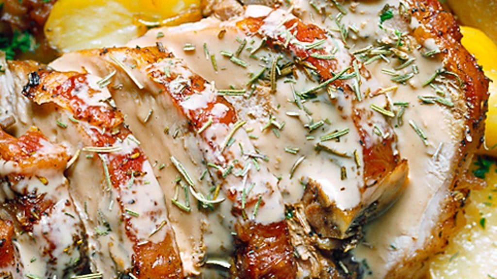6. Viipaloi liha ja lusikoi kerma päälle.