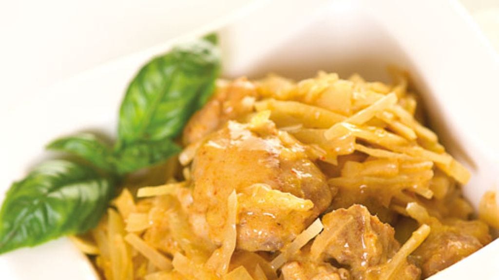 1. Pane pieni kattila kuumenemaan keskilämmölle. Lisää currytahna ja kuumenna 1 minuutti.