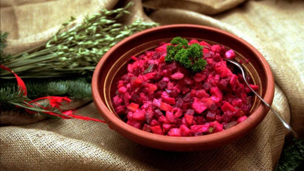 - Lisää kasvisliemi hitaasti pannulle yksi kauhallinen kerrallaan ja samalla hyvin sekoittaen kunnes liemi on haihtunut. Toista tämä vaihe kunnes risotto on sopivan kypsää (16–20 minuuttia). Laita punajuurimehu lopuksi risoton joukkoon ja sekoita vielä kerran.