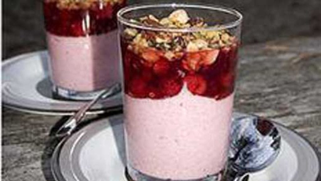 Tarjoa lasista. Lusikoi lasin pohjalle vatkattua puolukkapuuroa ja kaada päälle villimarjakiisseliä. Viimeistele annos ripottelemalla kiisselin päälle hieman mysliä.