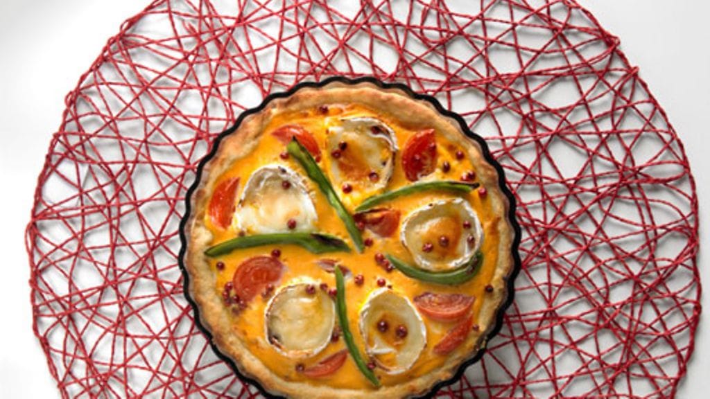Levitä taikina pyöreän piirakkavuoan pohjalle ja reunoille tasaisesti. Sekoita juustoraaste, munat, kermaviili, tuorejuusto ja pippurit ja levitä seos piirakalle. Asettele päälle kauniisti minitomaatit ja vuohenjuusto siivuina sekä sokeriherneet. Paista 200-asteisen uunin alimmalla tasolla n. 30 min kauniin väriseksi. Vuoan koko eli piirakan paksuus vaikuttaa paistoaikaan, mitä pienempi vuoka, sitä pidempi paistoaika.