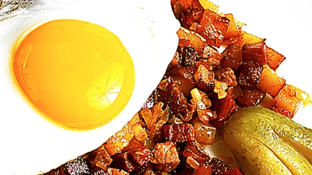 3. Paista munat tai tarjoile pyttipannu raakojen munankeltuaisten sekä punajuurten kera.