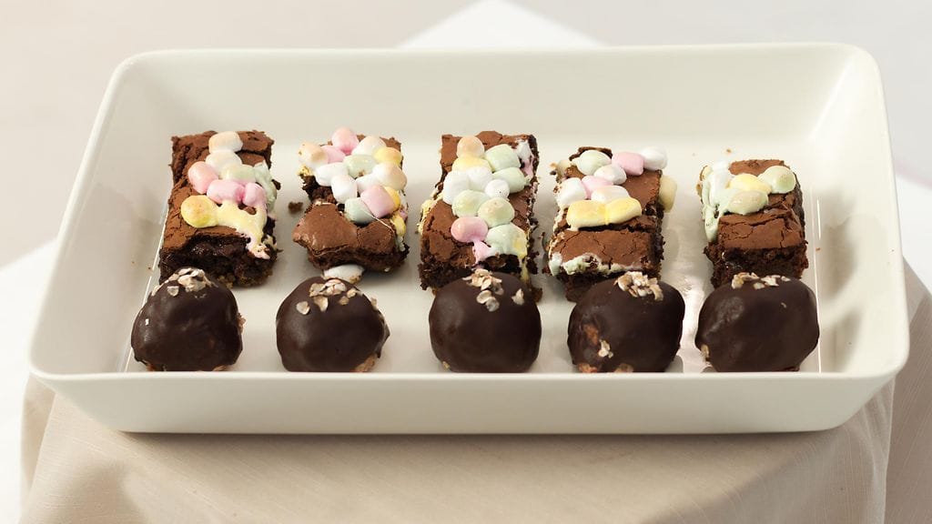 Hienonna kaurahiutaleet. Sekoita kaikki ainekset keskenään. Kääri kelmuun ja aseta jääkaappiin hetkeksi. Muotoile keksejä ja paista uunin keskitasolla 180-asteessa n.10-15min. Käytä ¾ -osa kekseistä brownieiden pohjan valmistamiseen, ja loput kekseistä säästä jäätelöön! Murskaa keksit ja sekoita voisulan kanssa. Painele seos suorakulmaisen vuoan pohjalle, joka on vuorattu leivinpaperilla.