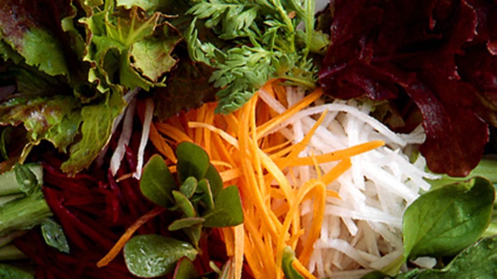 2. Kuori ja raasta porkkana, punajuuri ja retikka. Huuhtele salaatinlehdet, mangoldi ja pinaatit.
