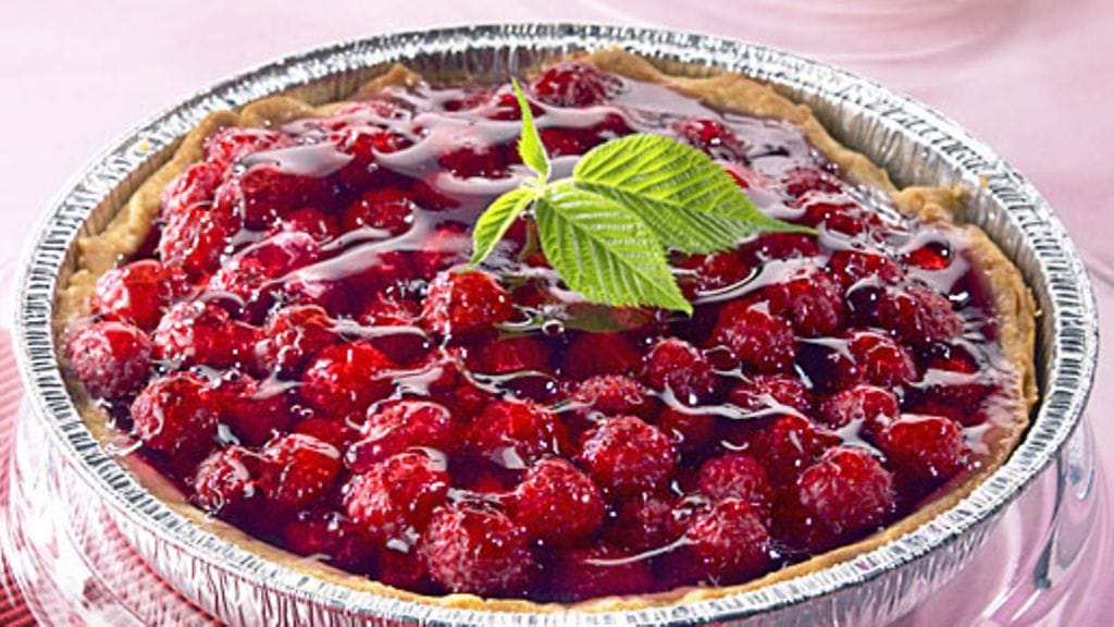 VINKKI: Pääset helpommalla, kun jätät hyytelön pois, vadelmatorttu on hyvää myös sellaisenaan ilman hyytelöä. Tortun voi tehdä myös muilla marjoilla tai hedelmäpaloilla. Käytä tällöin yhteensopivaa hilloa pohjalle ja mehua päälle.