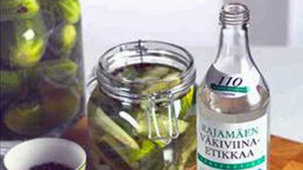 Kaada kuuma liemi kurkkujen päälle. Tarkista, että kurkut ovat liemen peitossa.