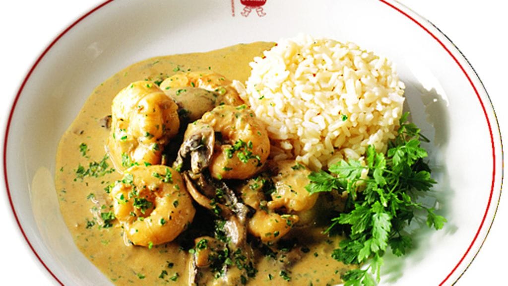 2. Vaahdota kera kevyesti. Pane ravunpyrstöt pannulla ja sekoita, kunnes pyrstöt ovat kuumentuneet kunnolla. Kaada pannulle konjakki ja Pernod ja sytytä varovasti. Kun liekit ovat sammuneet, lisää kerma.