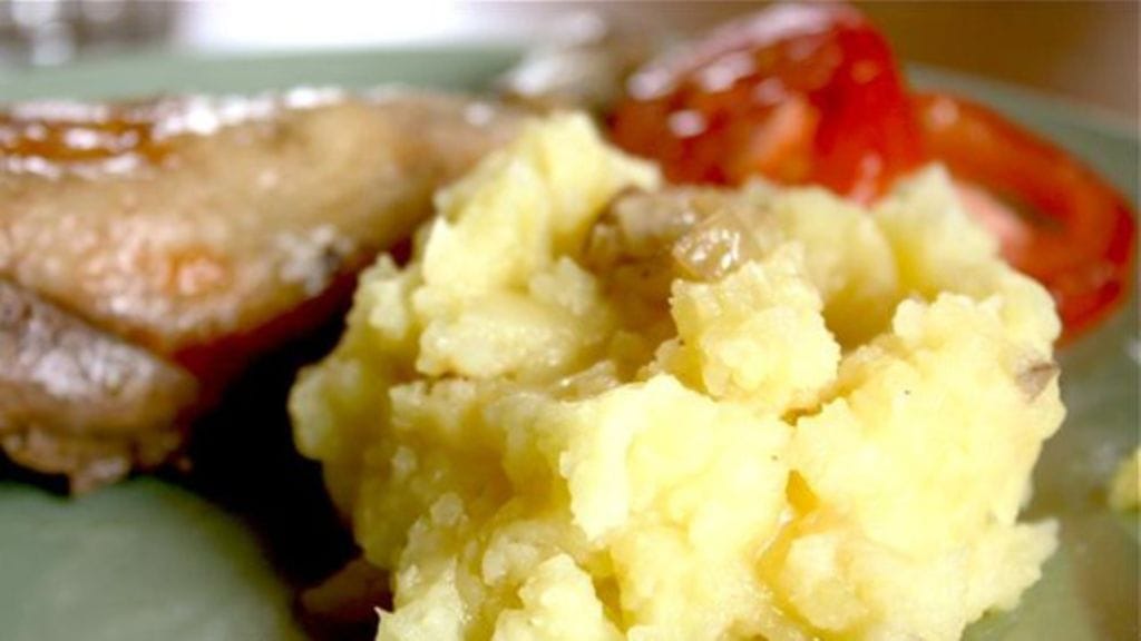Vinkki: vaihtelun vuoksi voi perunoiden kanssa muusata myös porkkanaa tai vaikka parsakaalia. Tätä perunamuusia tehdään reilusti, koska huomenna lopuista tehdään perunarieskoja.